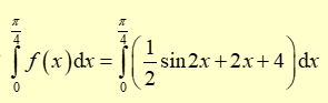 \( = \left. {\left( { - \frac{1}{4}{\rm{cos}}2x + {x^2} + 4x} \right)} \right|_0^{\frac{\pi }{4}} = \frac{{{\pi ^2} + 16\pi + 4}}{{16}} \approx 4\).