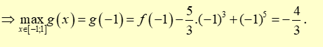Mà \(5{x^2}\left( {{x^2} - 1} \right) \le 0\forall x \in \left[ { - 1;1} \right]\) nên \(g'\left( x \right) \le 0\forall x \in \left[ { - 1;1} \right]\).