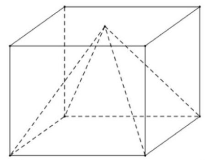 Một hộp quà hình lập phương chứa một mô hình đồ chơi đặc ruột có dạng hình chóp tứ giác đều mà đỉnh của hình chóp đó trùng với tâm của một mặt chiếc hộp, giả sử hình vuông đáy của hình chóp trùng với một mặt của chiếc hộp (mặt này cùng với mặt chứa đỉnh hình chóp là hai mặt đối nhau). Biết cạnh của chiếc hộp bằng \(30\,\,{\rm{cm}}.\) Thể tích phần không gian bên trong chiếc hộp không bị chiếm bởi mô hình đồ chơi dạng hình chóp bằng bao nhiêu \({\rm{c}}{{\rm{m}}^{\rm{3}}}\)?