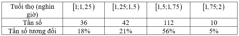 a) Ta có bảng thống kê mô tả tần số của bóng đèn theo tuổi thọ là