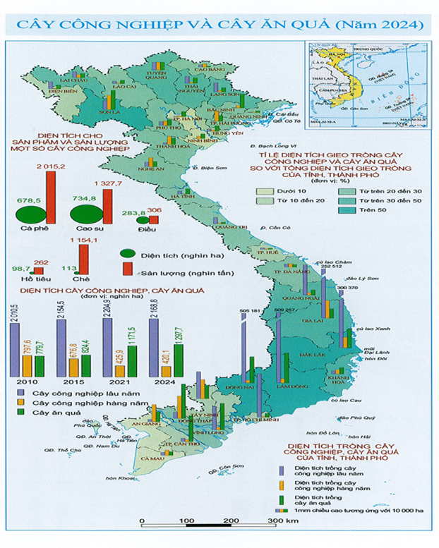 Phát biểu nào sau đây đúng về tình hình sản xuất, phân bố cây công nghiệp và cây ăn quả của nước ta hiện nay?