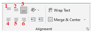 c) Nút lệnh (3) căn nội dung xuống đáy ô tính.