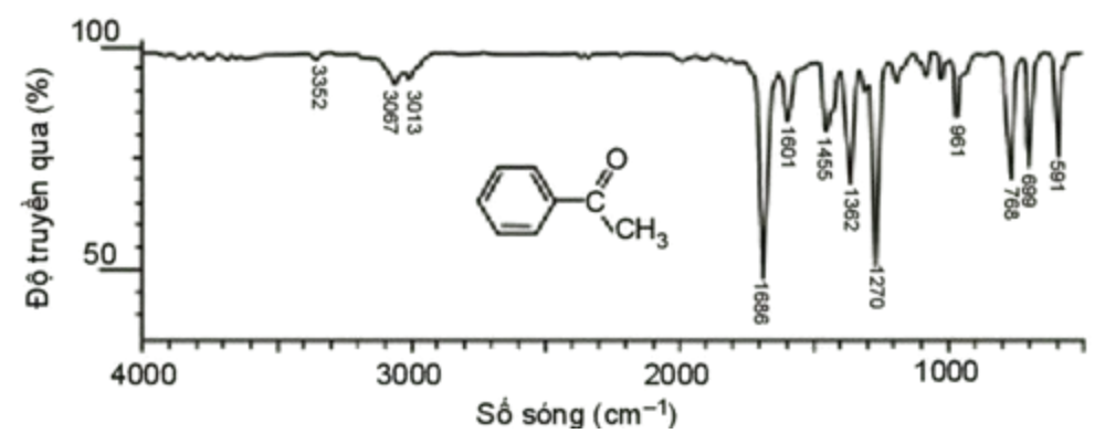 Dựa vào phổ hồng ngoại của hợp chất hữu cơ có cấu trúc như hình bên, số sóng hấp thụ đặc trưng cho nhóm carbonyl (C=O) của Ketone là: