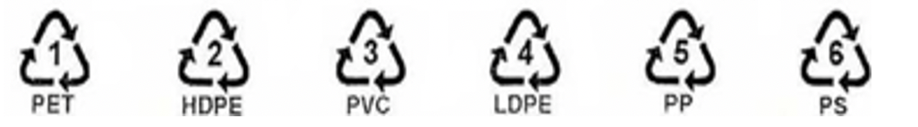 Hình dưới đây là ký hiệu của 6 polymer nhiệt dẻo phổ biến có thể tái chế :