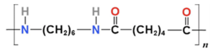 Polymer X có tính dai, bền, mềm mại, óng mượt, ít thấm nước, giặt mau khô. Polymer X dùng để dệt vải may mặc, vải lót săm lốp xe, dệt bít tất, bện làm dây cáp, dây dù, đan lưới,… Cấu tạo một đoạn mạch polymer X như hình bên: