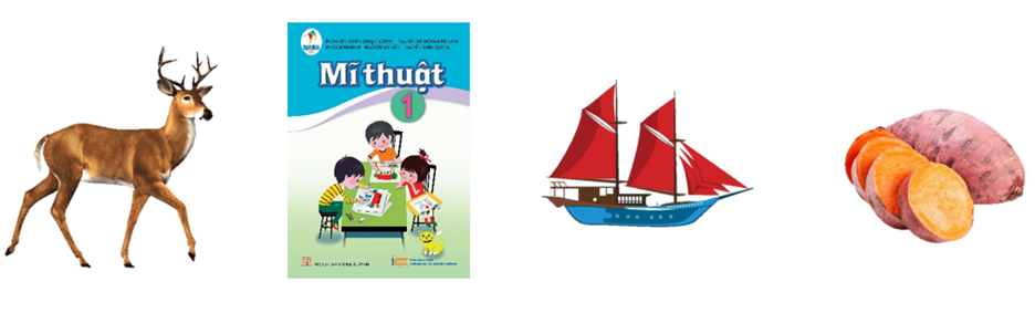con hươu                     quyển sách              con thuyền                          khoai lang