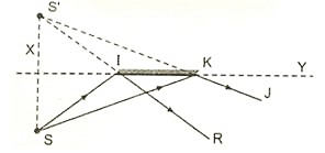 ⇒ Muốn quan sát thấy ảnh ảo S’ trong gương thì mắt phải nằm trong góc giới hạn bởi hai tia bản xạ IR và KJ nhưng ở phía trước gương (JKIR) vì tại đây mới có các tia phản xạ truyền đến mắt ta giúp ta thấy được ảnh ảo.