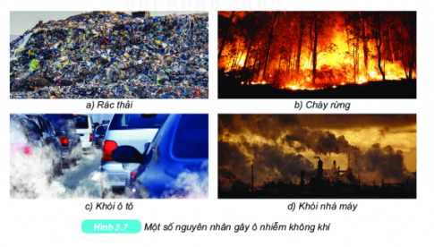 1. Quan sát hình 3.7 và nêu ra các nguyên nhân gây ô nhiễm không khí.
