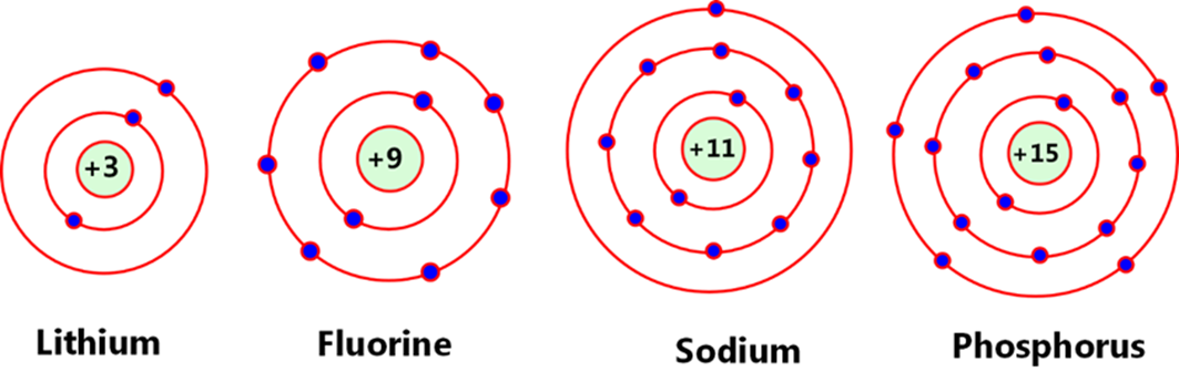 (1 điểm) Cho mô hình cấu tạo của một số nguyên tử. Xác định điện tích hạt nhân của nguyên tử:
