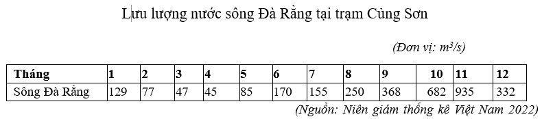 Căn cứ vào bảng số liệu trên, hãy cho biết lưu lượng tháng cao nhất của sông Đà Rằng năm 2022 gấp bao nhiêu lần lưu lượng tháng thấp nhất (làm tròn kết quả đến một chữ số thập phân).
