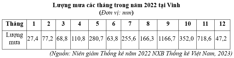 Căn cứ vào bảng số liệu trên, cho biết tháng mưa nhiều nhất ở Vinh năm 2022 gấp bao nhiêu lần tháng mưa ít nhất (làm tròn kết quả đến một chữ số thập phân).