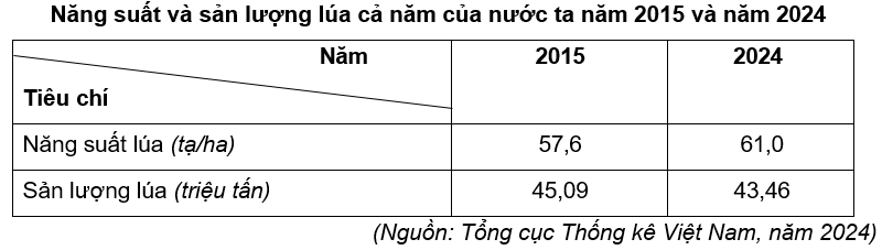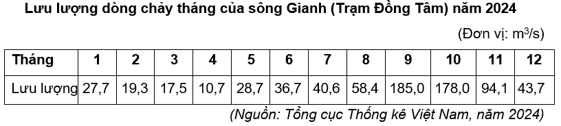 Cho bảng số liệu: