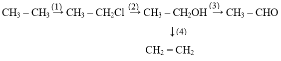 (a) CH3– CH3 + Cl2 \(→as\) CH3 – CH2Cl + HCl