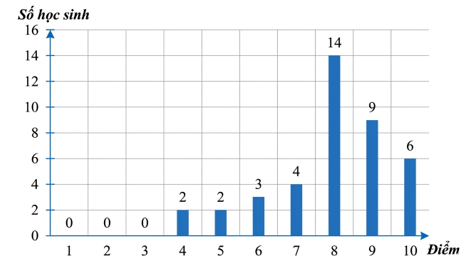 Trong biểu đồ dưới đây, số học sinh đạt điểm xuất sắc (điểm 9, điểm 10) là: