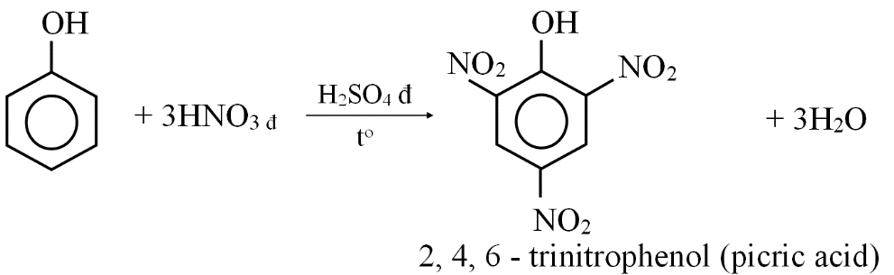 (b) Để tổng hợp picric acid, người ta cho 2,35 tấn phenol phản ứng với hỗn hợp HNO3 đặc/H2SO4 đặc, dư. Tính khối lượng picric acid thu được, biết hiệu suất phản ứng là 75%.
