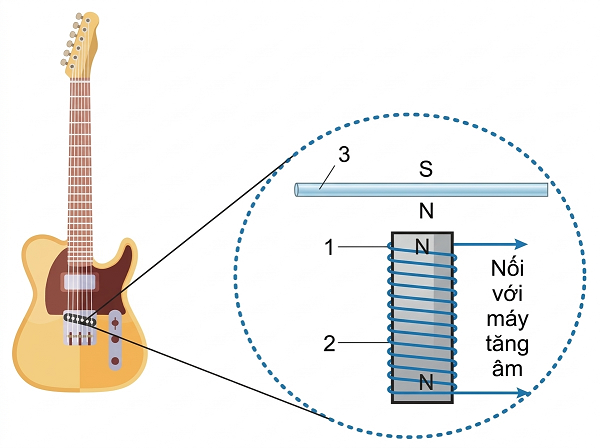 Đàn ghi ta điện hoạt động dựa trên hiện tượng cảm ứng điện từ để biến dao động cơ học của dây đàn thành tín hiệu điện có cùng tần số.