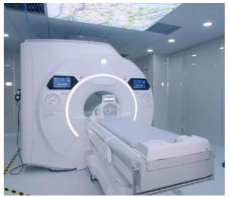 Tần số Larmor trong chụp MRI được xác định: \({\rm{f}} = \gamma {\rm{B}}\) với \(\gamma = 42,6{\rm{MHz}}/{\rm{T}}\) cho proton gọi là hằng số gyromagnet, B là độ lớn cảm ứng từ. Nếu một máy chụp MRI sử dụng từ trường 2 T thì sóng vô tuyến gây ra cộng hưởng từ hạt nhân có bước sóng (trong chân không) là \(3,52{\rm{\;cm}}\).