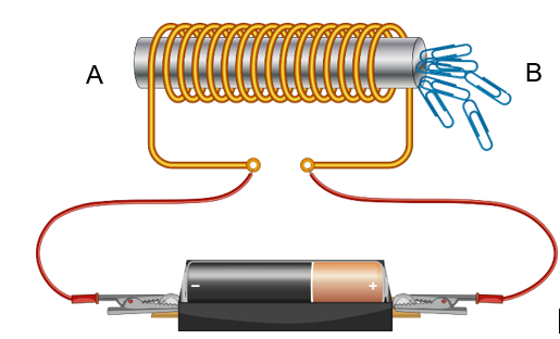 Khi ngắt dòng điện, các ghim săt vẫn bị hút dính chặt ở đầu A do thanh sắt non vẫn còn từ tính.
