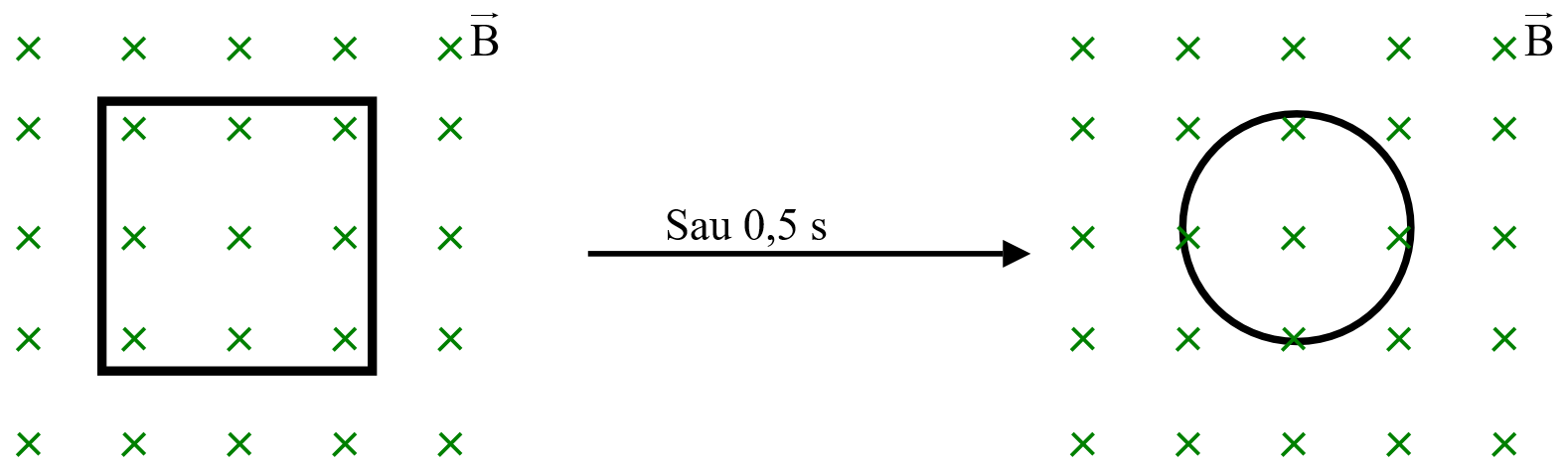 Suất điện động \[4,0\,mV,\]chiều dòng điện cảm ứng ngược theo chiều kim đồng hồ.