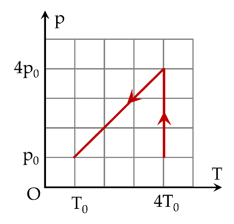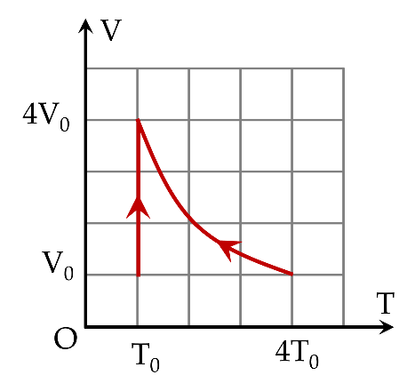Quá trình đầu tiên là giãn đẳng nhiệt, quá trình tiếp theo là nén đẳng áp, thể tích ban đầu và sau khi kết thúc quá trình biến đổi là bằng nhau.