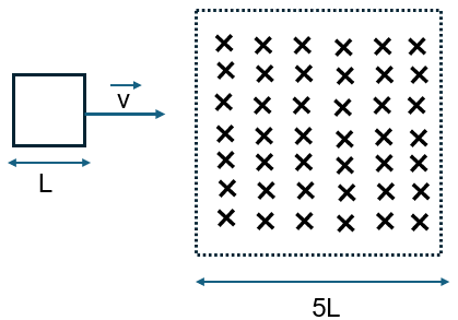 Tổng thời gian để dòng điện cảm ứng xuất hiện trong khung là thời gian khung kim loại đi vào và đi ra khỏi miền có từ trường: \(t = \frac{L}{v} + \frac{L}{v} = \frac{{2L}}{v}.\)