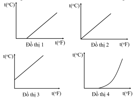 \(T^\circ F = 1,8 \cdot t^\circ C + 32.\) Do đó, \(t^\circ C = 0 \Rightarrow T^\circ F = 32\,^\circ F.\) Đồ thị liên hệ giữa nhiệt giai Celsius và nhiệt giai Fahrenheit là hàm bậc nhất không đi qua gốc tọa độ