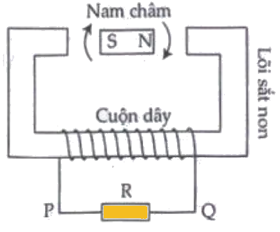 Theo quy tắc bàn tay phải, dòng điện trong mạch ngoài qua điện trở R ban đầu sẽ chạy từ P đến Q. Khi từ thông đổi chiều trong nửa vòng sau, dòng điện sẽ chạy ngược từ Q đến P.