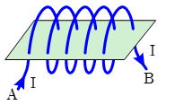 Hình dưới cho thấy một cuộn dây đi xuyên qua một miếng bìa cứng nằm ngang. Một dòng điện không đổi đi qua cuộn dây từ A đến B để tạo ra một từ trường.