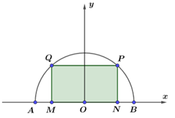 Trước sân nhà A của một trường THPT có một mảnh đất là nửa hình tròn có đường kính \[AB = 10m\]. Nhà trường muốn trồng hoa trong hình chữ nhật \[MNPQ\] và phần đất còn lại trồng cỏ Nhật. Biết chi phí trồng hoa là \[100\] nghìn đồng/\[1{m^2}\]. Trồng cỏ Nhật hết \[150\] nghìn đồng/\[1{m^2}\]. Hỏi chi phí (làm tròn đến đơn vị nghìn đồng) hết ít nhất là bao nhiêu?