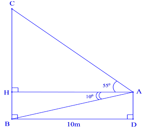 CH= \(10.\tan {55^0}\)