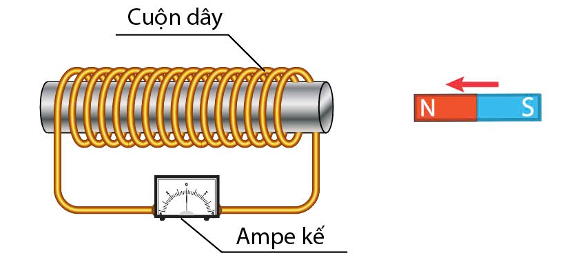 Một học sinh tịnh tiến một nam châm đến gần một cuộn dây dẫn như hình vẽ. Cuộn dây được nối với một ampe kế nhạy. Thay đổi nào sau đây không làm tăng số chỉ của ampe kế?