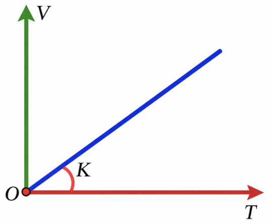 Đây là đồ thị \({\rm{V}} = {\rm{KT\;}}\left( {{\rm{K}} = {\rm{tan}}\alpha } \right)\)