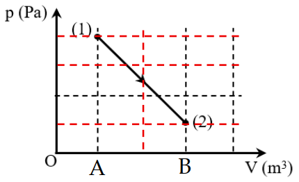 \({\rm{A}} = {{\rm{S}}_{{\rm{A}}\left( 1 \right)\left( 2 \right){\rm{B}}}} = \frac{1}{2}\left( {{{\rm{p}}_1} + {{\rm{p}}_2}} \right).\left( {{{\rm{V}}_2} - {{\rm{V}}_1}} \right) = \frac{1}{2}.1,25{{\rm{p}}_1}.2{{\rm{V}}_1} = 1,25{{\rm{p}}_1}{{\rm{V}}_1} = 1,25 \times {2.10^5} \times {2.10^{ - 3}} = 500{\rm{\;J}}\)