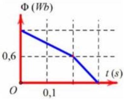 Trục hoành có mốc 0,1 s tương ứng với 1 ô ly. Đồ thị cắt trục hoành (từ thông giảm về 0) tại vị trí 3 ô ly, tức là ở thời điểm \(t = 0,3{\rm{s}}\).