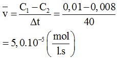 2(0,5) Tốc độ trung bình của phản ứng trong khoảng thời gian 40 giây tính theo HCOOH là: