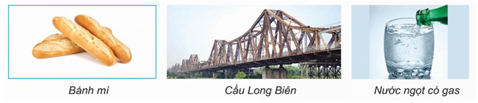 a. Sai. Bánh mì, cầu Long Biên, nước ngọt có gas là các vật thể nhân tạo.