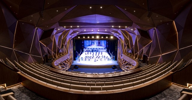 Hệ thống chiếu sáng đáp ứng nhiều loại hình nghệ thuật, với các không gian biểu diễn riêng biệt như ánh sáng theo dõi diễn viên, hoặc tạo nên các khung cảnh nghệ thuật. Nhà hát có 6 tầng nổi, 3 tầng hầm, gồm khán phòng chính 900 chỗ ngồi, phòng hòa nhạc 500 chỗ và các khu vực trưng bày, triển lãm nghệ thuật và các công trình phụ trợ khác. Điểm nhấn kiến trúc châu Âu là 52 cột đá nguyên khối nhập khẩu từ Tây Ban Nha, cùng các mặt kính và mái vòm bao bọc tòa nhà.