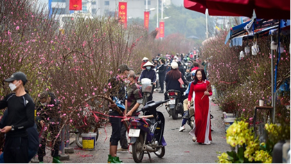 Người dân đi mua đào chuẩn bị đón tết.