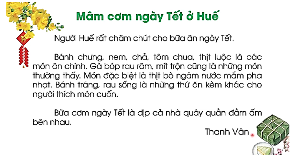 11 câu Trắc nghiệm Tiếng Việt lớp 1 Chân trời sáng tạo Bài 3: Mâm cơm ngày Tết ở Huế có đáp án
