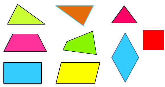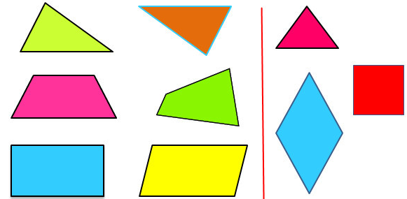 Các hình ở đáp án A, B, C đều là hình có 4 cạnh, gọi là hình tứ giác.