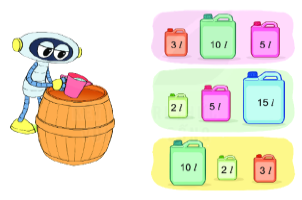 Đáp án: 3 l + 10 l + 5 l = 13 l + 5 l = 18 l. Mà 18 l > 15 l = > Loại