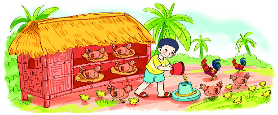Gà trống: 2 con; gà mái: 5 con ; gà con: 7 con