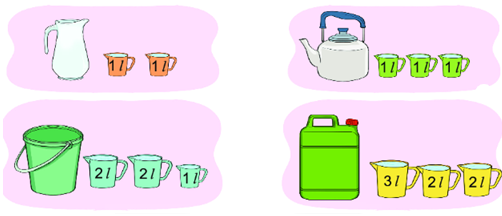 Mỗi đồ vật sau đựng được bao nhiêu lít?