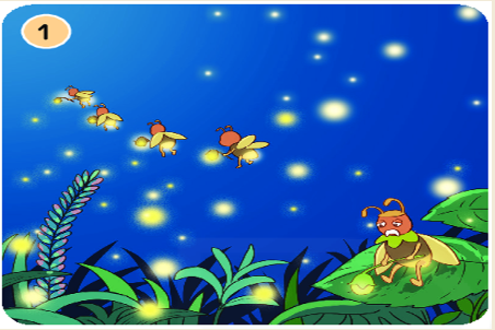 Nhân vật xuất hiện tỏng bức tranh là bác đom đóm già và bầy đom đóm nhỏ