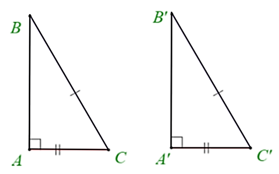\(\Delta ABC = \Delta A'B'C'\) (cạnh huyền – cạnh góc vuông).