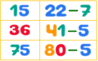 Ta có: 41 – 5 = 36; 80 – 5 = 75; 22 – 7 = 15