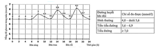 Đo chỉ số đường huyết khi đói của một người, thu được kết quả thể hiện qua đồ thị sau: