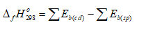 Nhiệt tạo thành của một chất (D f H) là biến thiên enthalpy của phản ứng tạo thành 1 mol chất đó từ các đơn chất ở dạng bền vững nhất, ở một điều kiện xác định. Nhiệt tạo thành chuẩn (\({\Delta _f}H_{298}^o\) ) là nhiệt tạo thành ở điều kiện chuẩn. Phản ứng có giá trị biến thiên enthalpy chuẩn âm hơn thì sẽ tỏa nhiệt nhiều hơn. Nhiệt tạo thành chuẩn của các đơn chất ở dạng bền vững nhất bằng 0. Phản ứng hóa học là quá trình phá vỡ các liên kết trong chất đầu và hình thành các liên kết mới để tạo thành sản phẩm. Biến thiên enthalpy của phản ứng (mà các chất đều ở thể khí), bằng hiệu số giữa tổng năng lượng liên kết của các chất đầu và tổng năng lượng liên kết của các sản phẩm (ở cùng điều kiện nhiệt độ và áp suất). Ở điều kiện chuẩn: