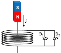 B. Khi thanh nam châm đang rơi vào lòng ống dây thì cả hai đèn led đều sáng.