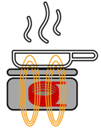 B. từ trường biến thiên tạo dòng điện cảm ứng trong đáy chảo, dòng điện này gây tỏa nhiệt.